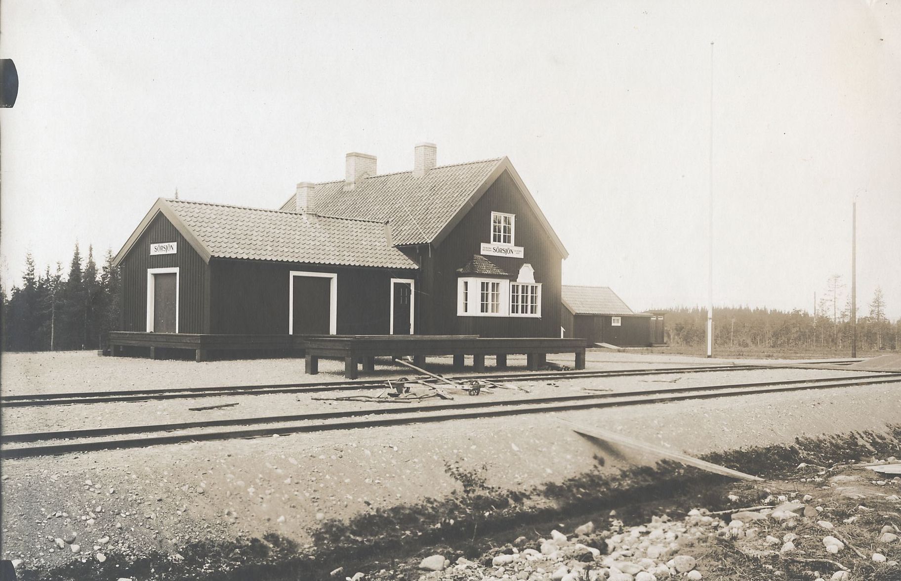 Die Västerdalsbanan wurde 1905 in Falun/Repbäcken eröffnet und dann in Etappen Richtung Norden erweitert. Im August 1928 wurde der Abschnitt von Limedsforsen nach Särna eröffnet. Eine Bahnstation davon war unsere Station in Sörsjön.